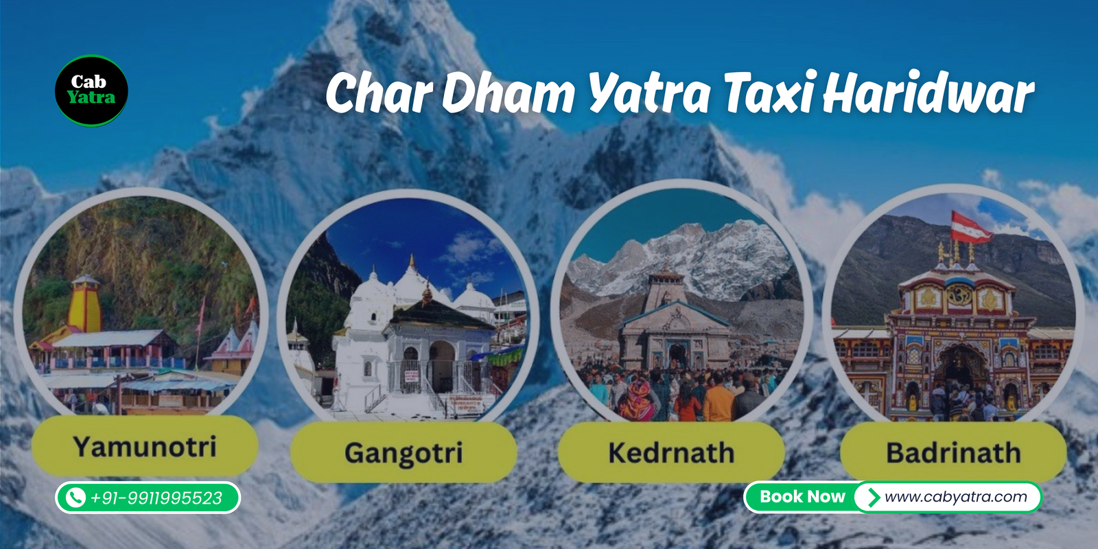 Planning your spiritual journey to the sacred Char Dham in Uttarakhand? Let Cab Yatra be your trusted travel partner for a smooth and comfortable ride across the divine Himalayan region. We offer affordable and reliable Char Dham Yatra taxi services from Haridwar, starting at just ₹3099 per day. Whether you’re traveling solo, with family, or in a group, our wide fleet of taxis ensures a peaceful journey to the four holy shrines—Yamunotri, Gangotri, Kedarnath, and Badrinath.