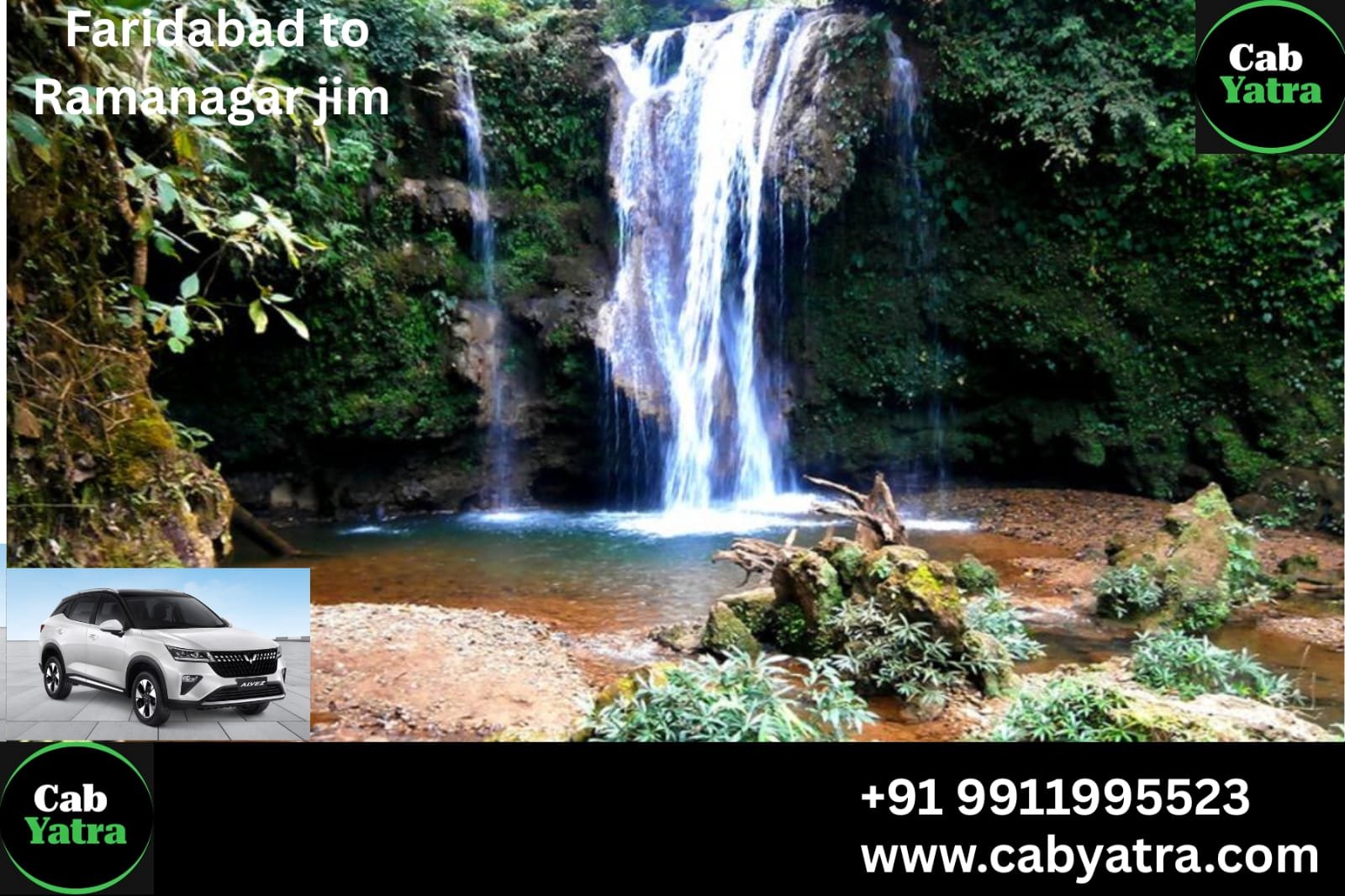 Book your Faridabad to Ramnagar (Jim Corbett) cab with CAB YATRA for just ₹3499. Call +91 99119 95523 or visit www.cabyatra.com for a comfortable and hassle-free ride into nature.