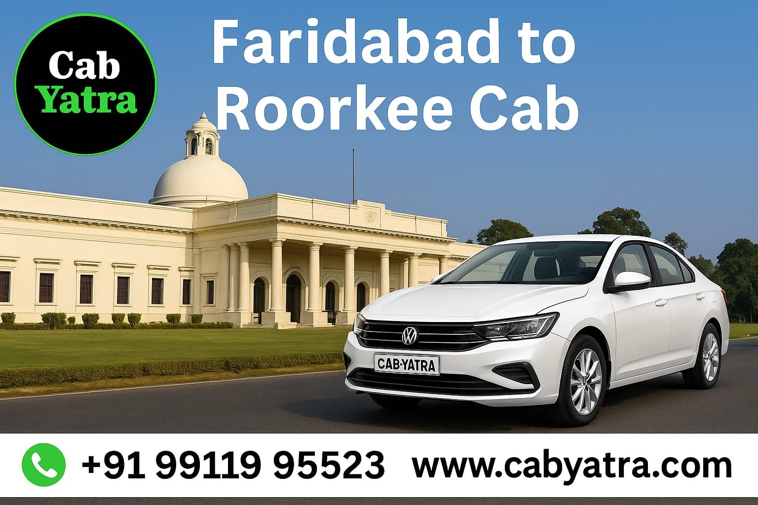Book a safe, comfortable, and affordable Faridabad to Rudrapur cab with CAB YATRA at a starting price of ₹2599. Call +91 99119 95523 or visit www.cabyatra.com now.